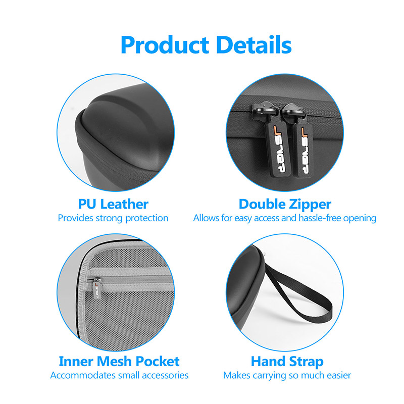 Specifications: Color: Black Dimensions: 175*152*70mm/6.89*5.98*2.76 inches Weight: 215g/7.58oz Materials: PU Leather + EVA Model: JSVER-DR2011 |