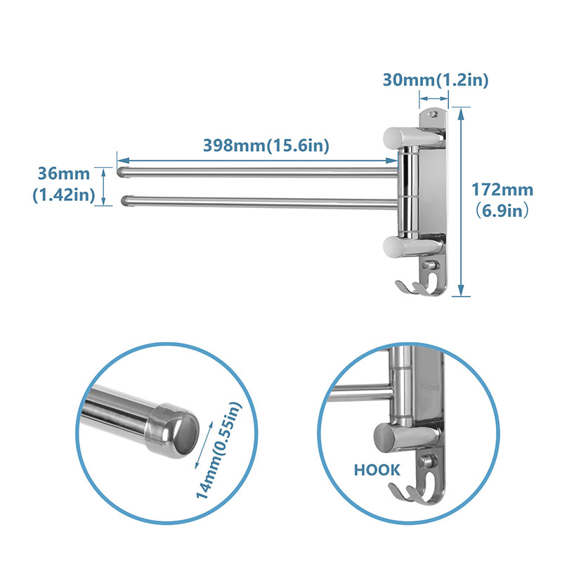 Specifications: Materials: SUS304 Stainless Steel Surface: Stainless Steel Dimensions: 17.1*6.8*1.2in/43.4*17.2*3.0cm Weight: 11.5oz/325g Each arm stands weight: 7.7lbs/3.5kg Maximum weight supported: 15.4lbs/7.0kg Model: JSVER-TR0202 |