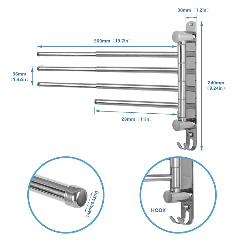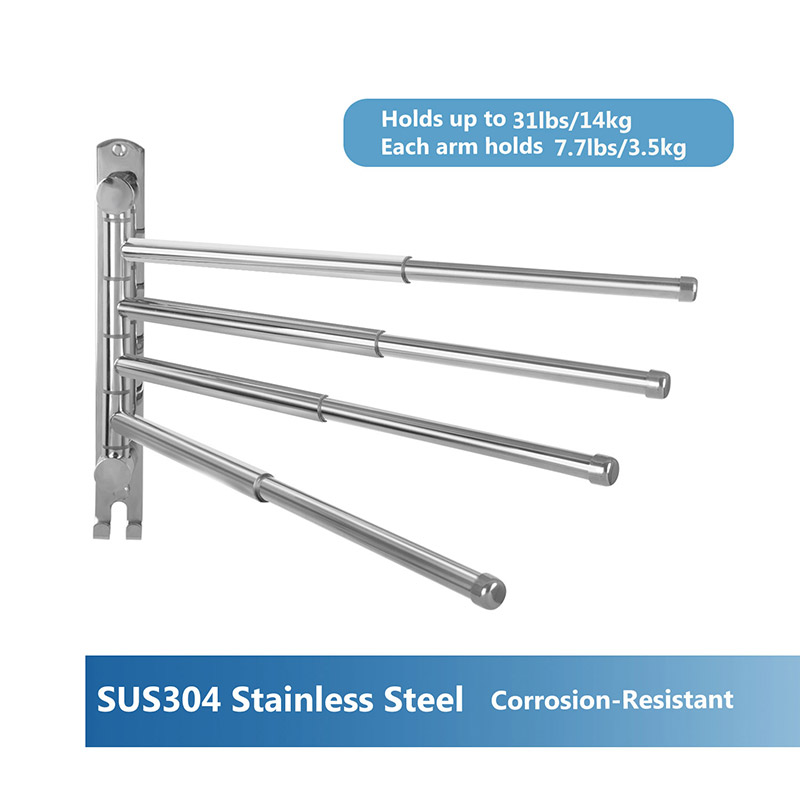 Features: Keeps your towels and other items dry and organized Extends horizontally from 28cm/11.0" to 50cm/19.7" to hold a bath towel when fully extended Designed to let you adjust the size to suit your space and your towels The arms can be set to any angle and move independent of one another Perfect for rooms lacking wall space for a regular towel bar Wall mounted design offers space-efficient storage solution for your towel and other items. Stainless steel finish, with no sharp edges Comes with hardware for easy installation to the wall |