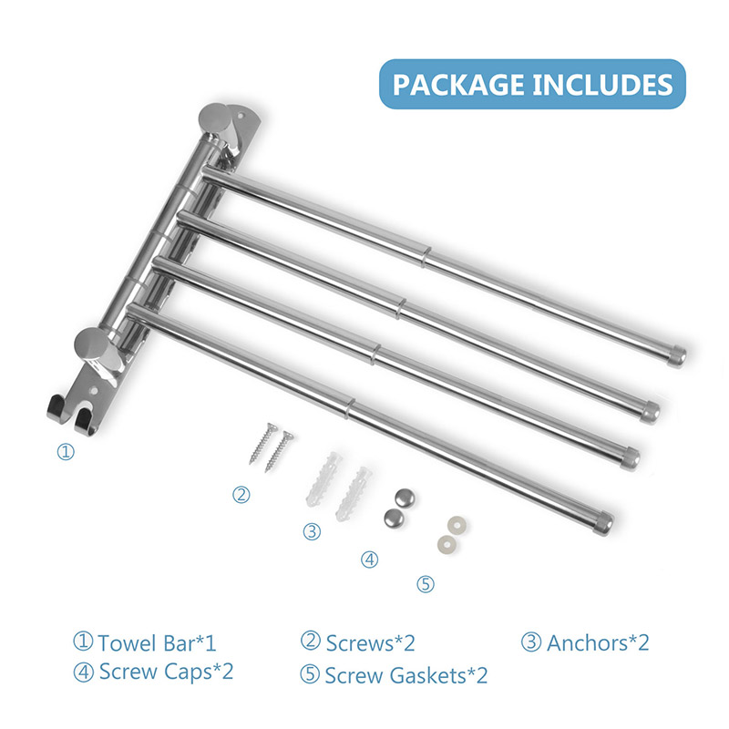 Package Includes: 1 x JSVER Towel Bar 2 x Screws 2 x Anchors 2 x Screw Caps 2 x Screw Gaskets |