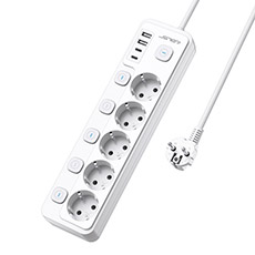 JSVER Socket Strip 6 Slots with 4 USB Charging Connections