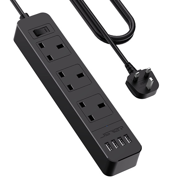 JSVER Extension Lead with 4 USB Ports Plug Extension